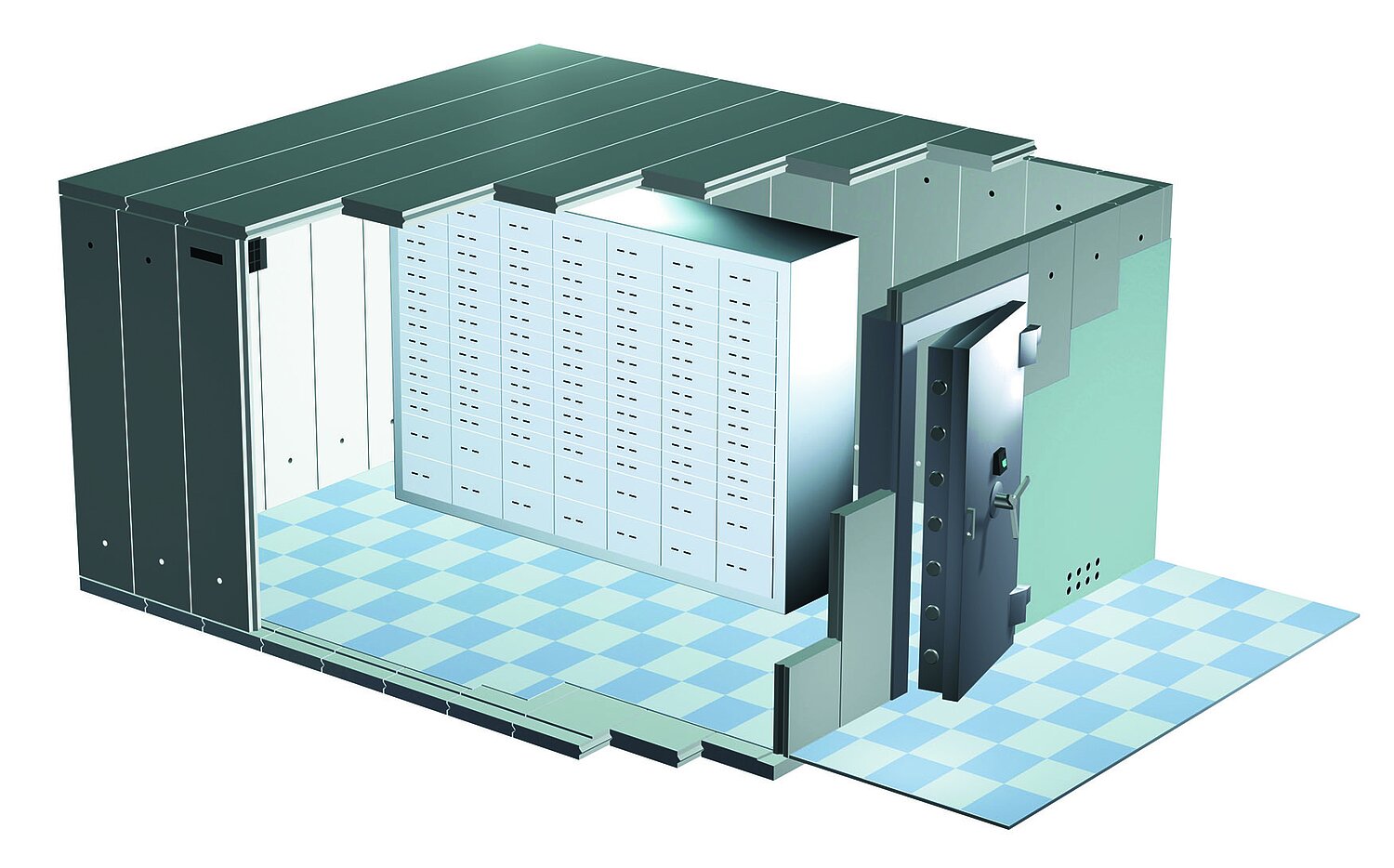 Eine Kombination aus Wertschutzraum und Einzeltresoren ermöglicht höchste Sicherheit bei optimaler Raumnutzung.