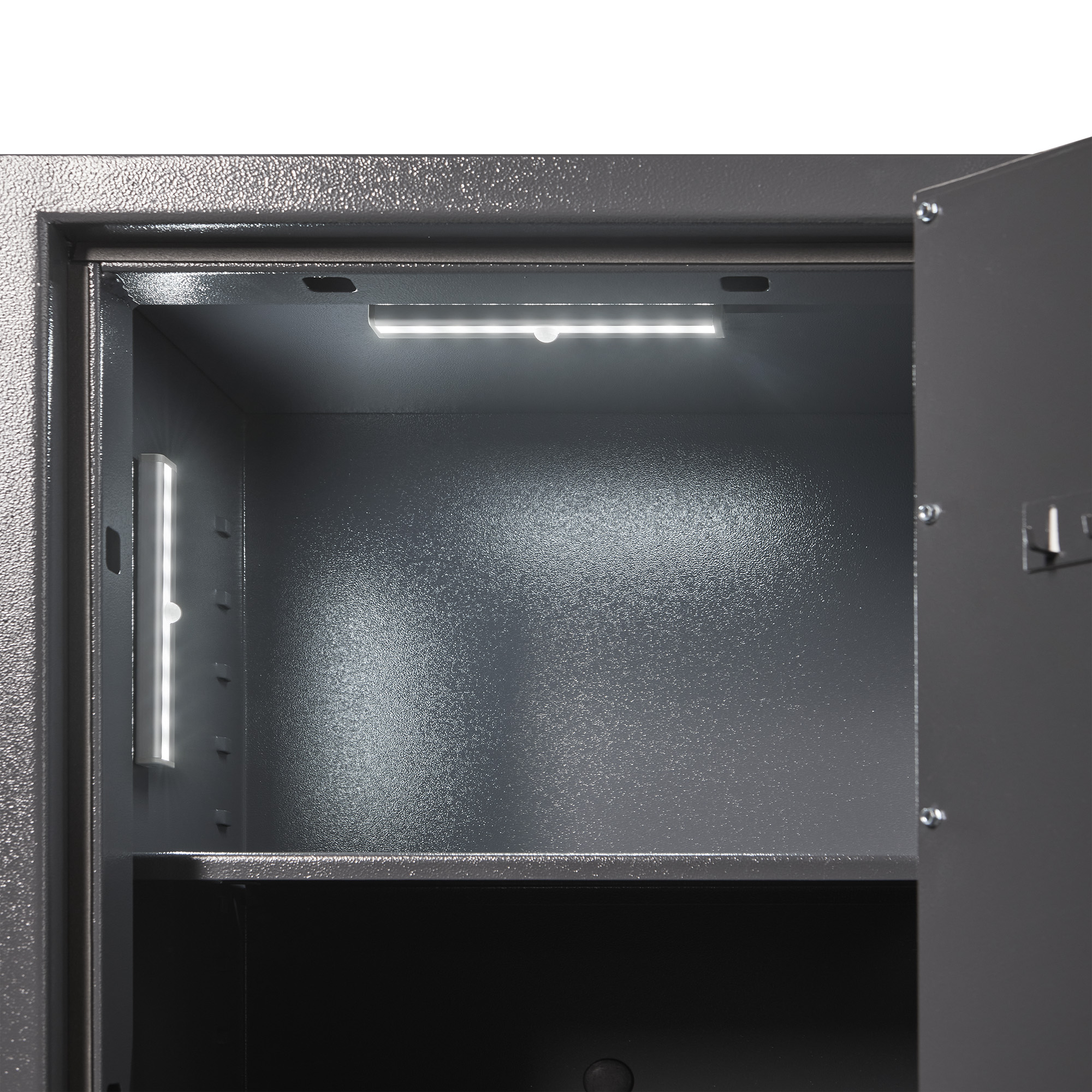 La lampe de coffre-fort à LED Motion se fixe facilement par bande magnétique sur les parois métalliques de votre coffre-fort ou de votre Armoire forte pour armes, il n'est pas nécessaire de percer, de visser ou de poser des câbles. La lampe LED universelle peut également être utilisée dans d'autres armoires, tiroirs ou comme éclairage sous le meuble.