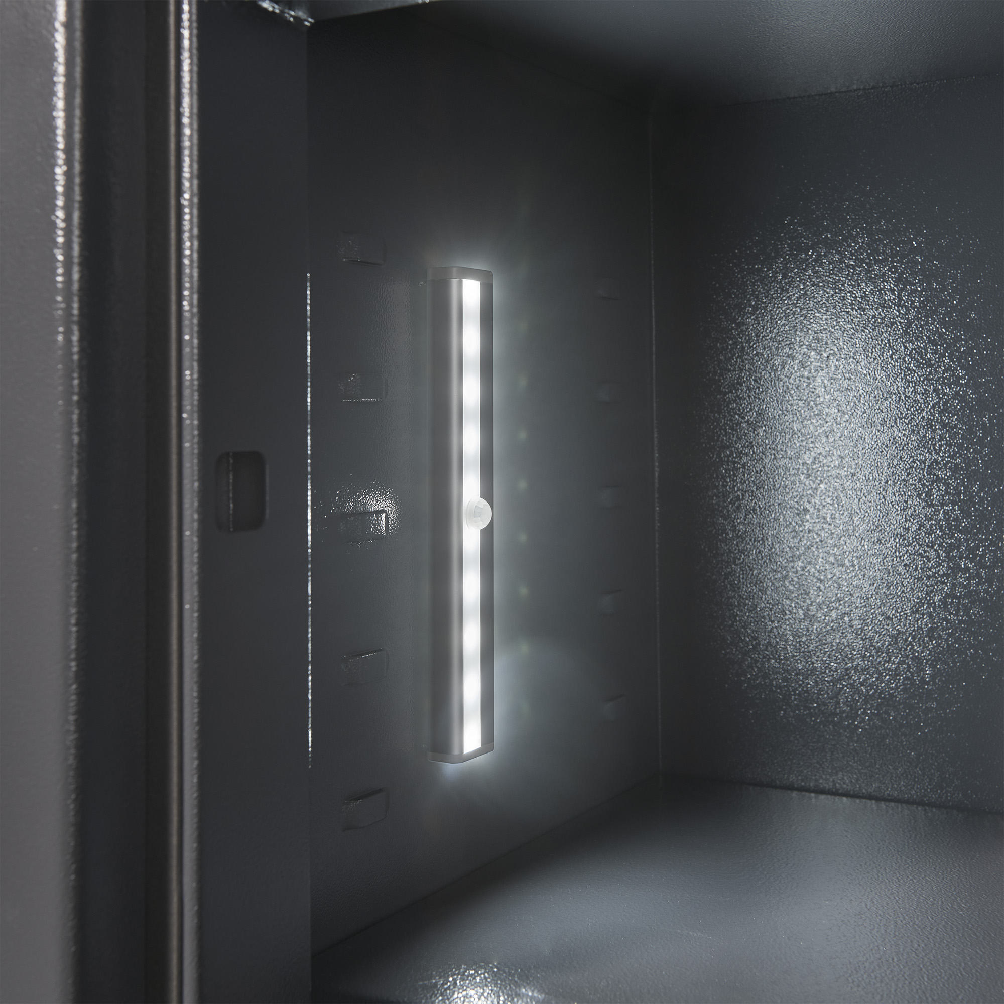 Ne cherchez plus jamais dans l'obscurité : La lumière pour coffre-fort Motion éclaire l'intérieur de votre coffre-fort dès son ouverture - exactement au moment où vous avez besoin de lumière. Le capteur infrarouge réglable détecte la chaleur corporelle dans un rayon de 3 mètres et réagit également aux mouvements. Votre coffre-fort est ainsi automatiquement éclairé, sans que vous ayez à actionner un interrupteur.