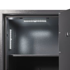 .Le Détecteur de mouvement infrarouge réglable active les lampes LED uniquement lorsque vous êtes à proximité du coffre-fort. Vos objets de valeur, tels que montres, bijoux, documents ou contrats, sont donc bien visibles et vous ne devez plus les chercher dans l'obscurité. Si le coffre-fort reste ouvert pendant une courte période sans que vous ou une autre personne ne se trouve à proximité, la lumière LED s'éteint pour économiser la charge de la batterie. Les LED à faible consommation d'énergie vous offrent une combinaison parfaite d'une grande intensité lumineuse et d'une faible consommation de piles, de sorte qu'il n'est pas nécessaire de changer fréquemment les 4 piles AAA ou les accumulateurs. Les piles ou accumulateurs ne sont pas inclus dans la livraison.