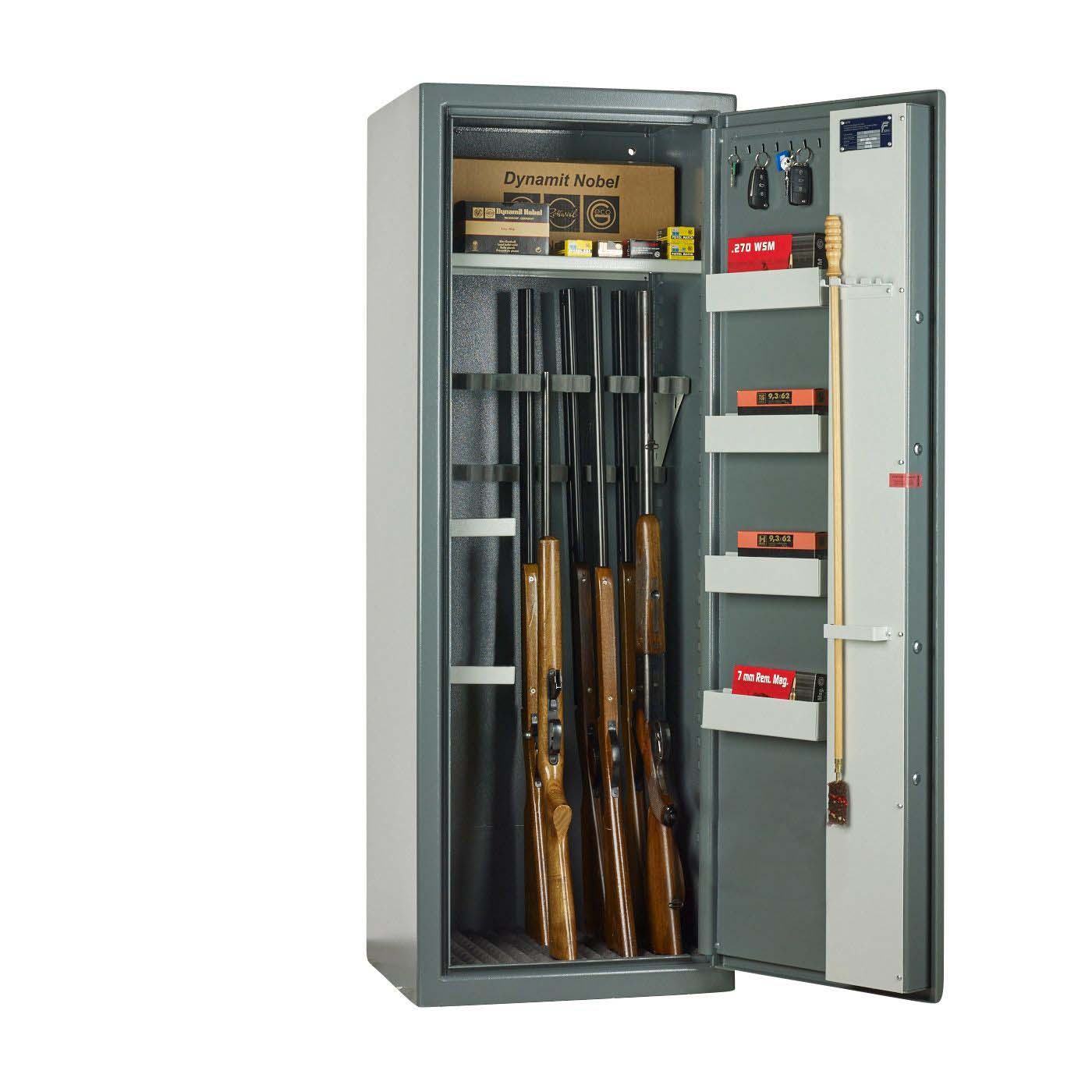 | Modèle | Dimensions extérieures | Poids | Nombre de supports pour armes longues | Nombre de crochets à clés | |