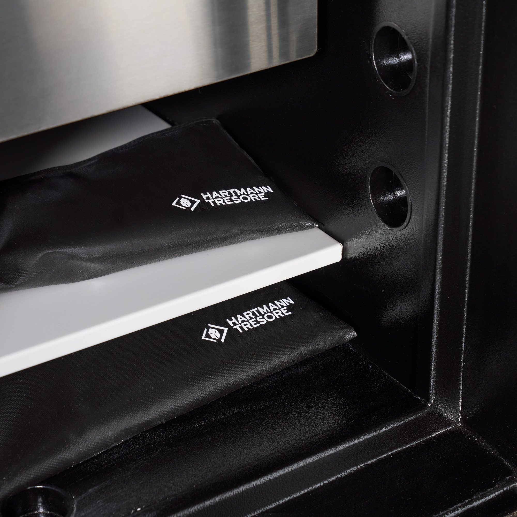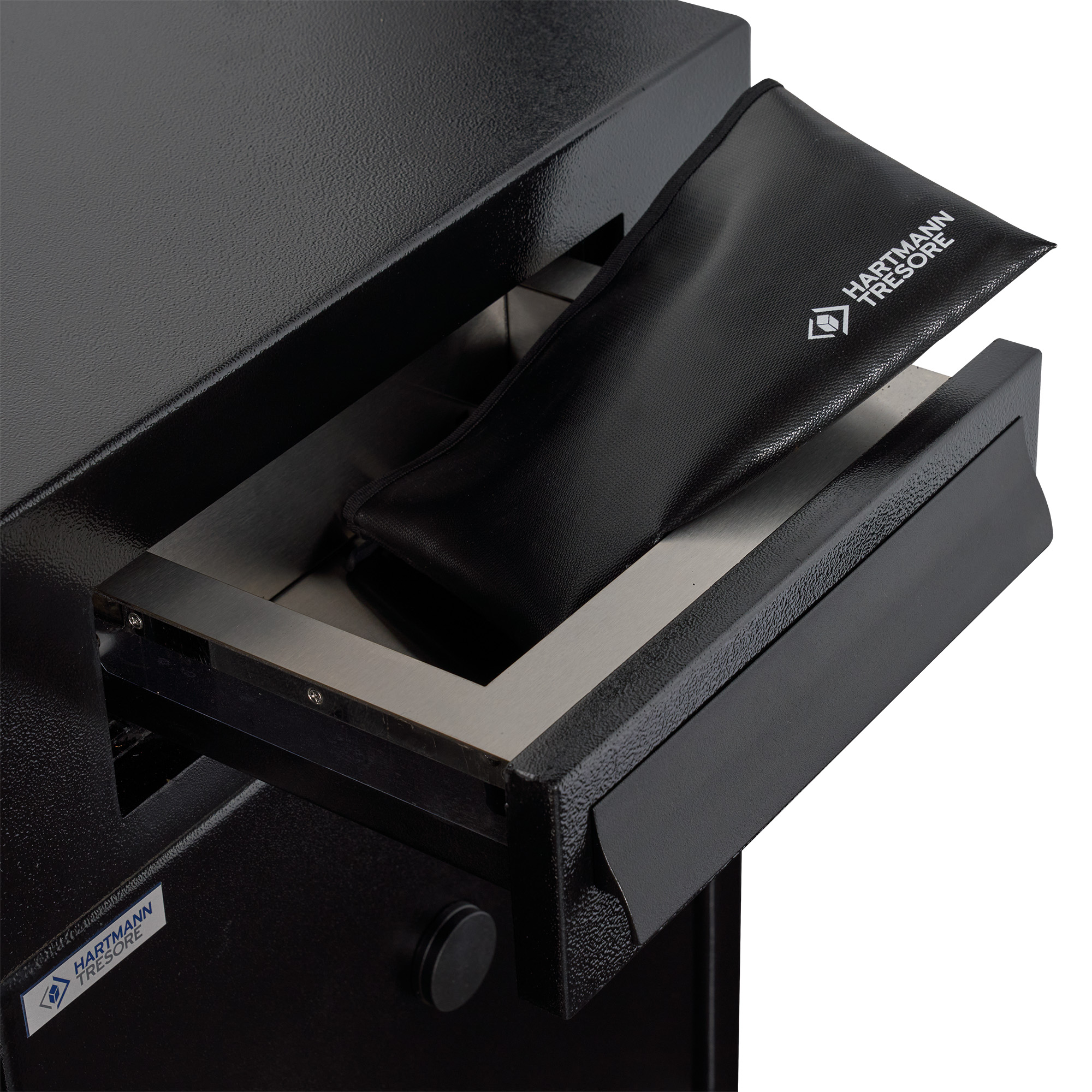 La serie di casseforti HTDPII4000 non solo convince per l'elevato livello di sicurezza grazie all'ergonomia ottimale e alla struttura solida, ma anche per la verniciatura nera e i componenti cromati che ne sottolineano la robustezza in combinazione con l'alta qualità - tipica di HARTMANN TRESORE.
