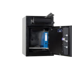 Il sofisticato Sistema di inserimento con cassetto ti permette di riporre in modo facile e veloce un'ampia gamma di oggetti di valore, come le SafeBag per i contanti o le buste per i documenti.