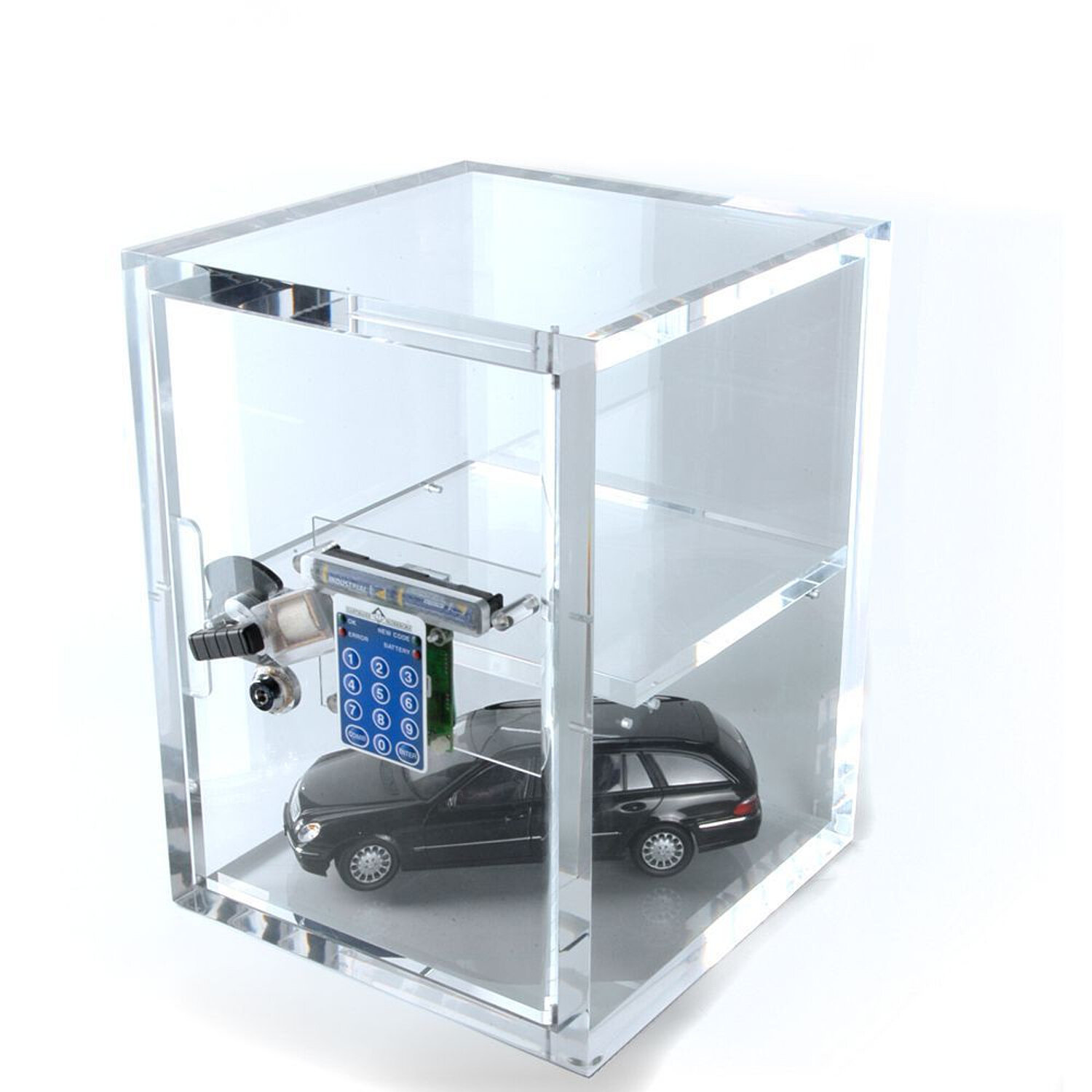 Die Tresore bestehen aus hochwertigem, bruchsicherem Acrylglas und lassen sich individuell gestalten – zum Beispiel mit Beleuchtung oder Branding. Dadurch verbinden sie optische Wirkung mit sicherer Verwahrung.